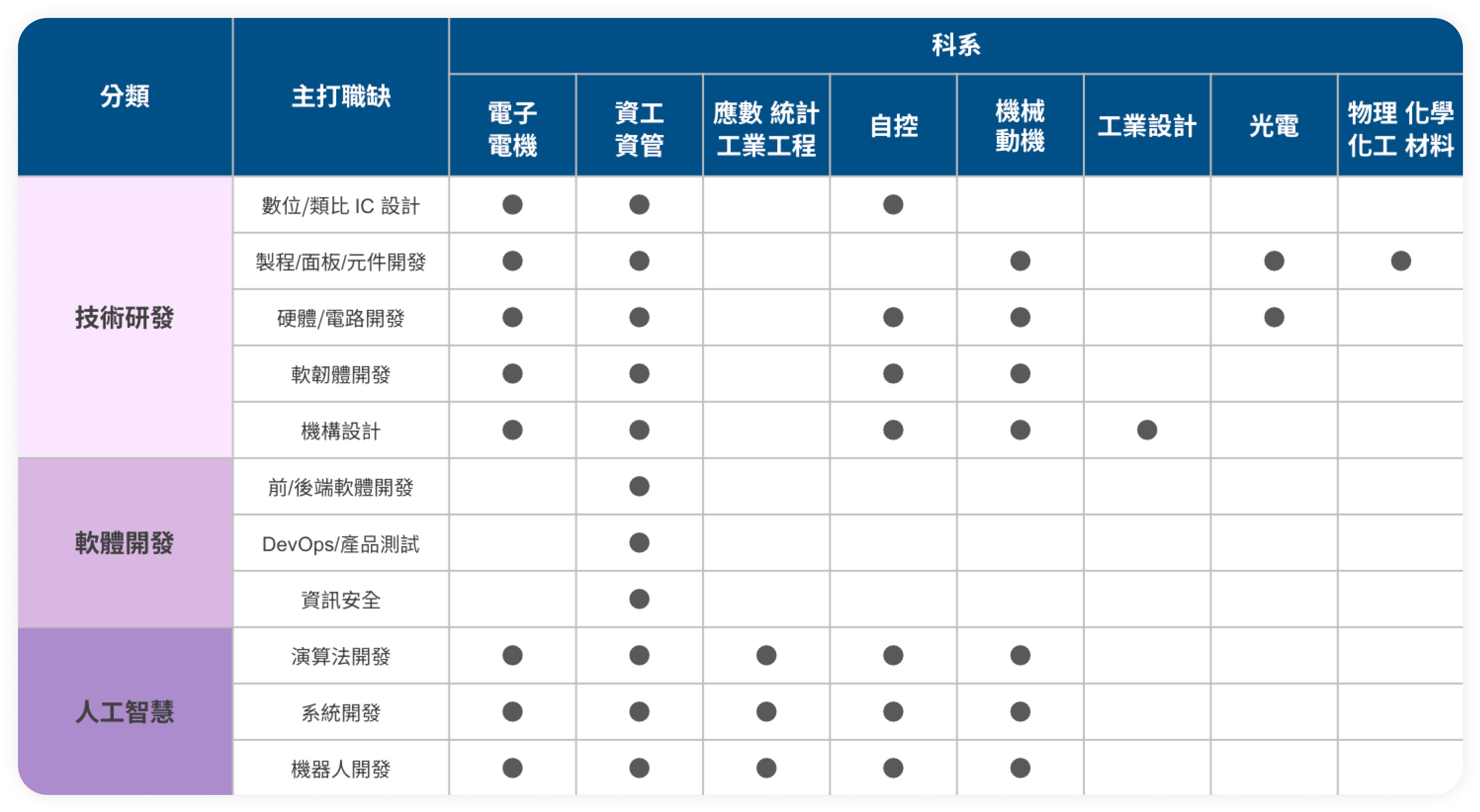 職缺科系對照表