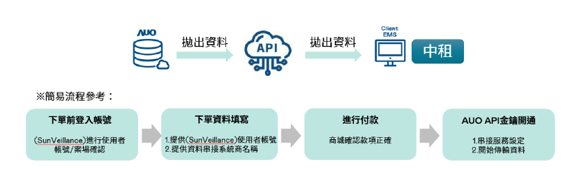 API 串接服務為 Client 端和AUO雲端平台透過 HTTPs 通訊協定來進行資料請求與回應 |