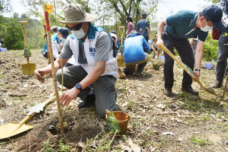 本次植樹場地位於里山的土砂捍止保安林,栽植固碳效用極佳的相思樹,期待透過林地的復育能防止土石崩塌